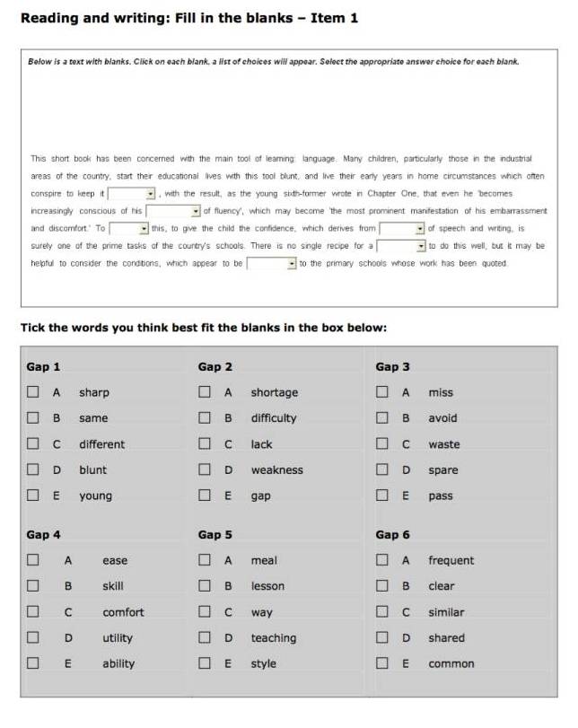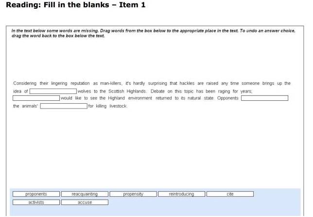 官方在Tests Plus指出,做这类题的顺序是:第一步,先大体浏览一遍文章,看看文章大概讲什么。第二步,开始选词。拉下菜单,先看看意思,词性,单复数,判断能不能排除部分单词。之后,想想有没有什么固定搭配是适合的。这样基本就可以选出来了。最后一步,把整篇文章再大概读一遍,看看语感和意思是否有问题。基本上这几步做完了,这类题目也不会做的太差。